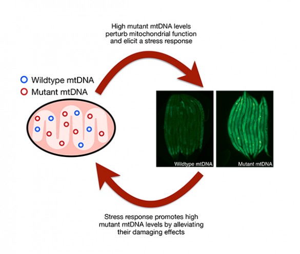Cells continuously monitor the health status of their mitochondria. When they detect mitochondrial dysfunction, the cells attempt to repair the problem with a procedure called the mitochondrial unfolded protein response. In addition to alleviating the dysfunction inside mitochondria, the procedure protects them from being destroyed by the cell’s disassembly mechanisms. The researchers found evidence that some mutant mitochondria can activate this response which causes the cell to tolerate their presence and allows the mutant mtDNA to proliferate.