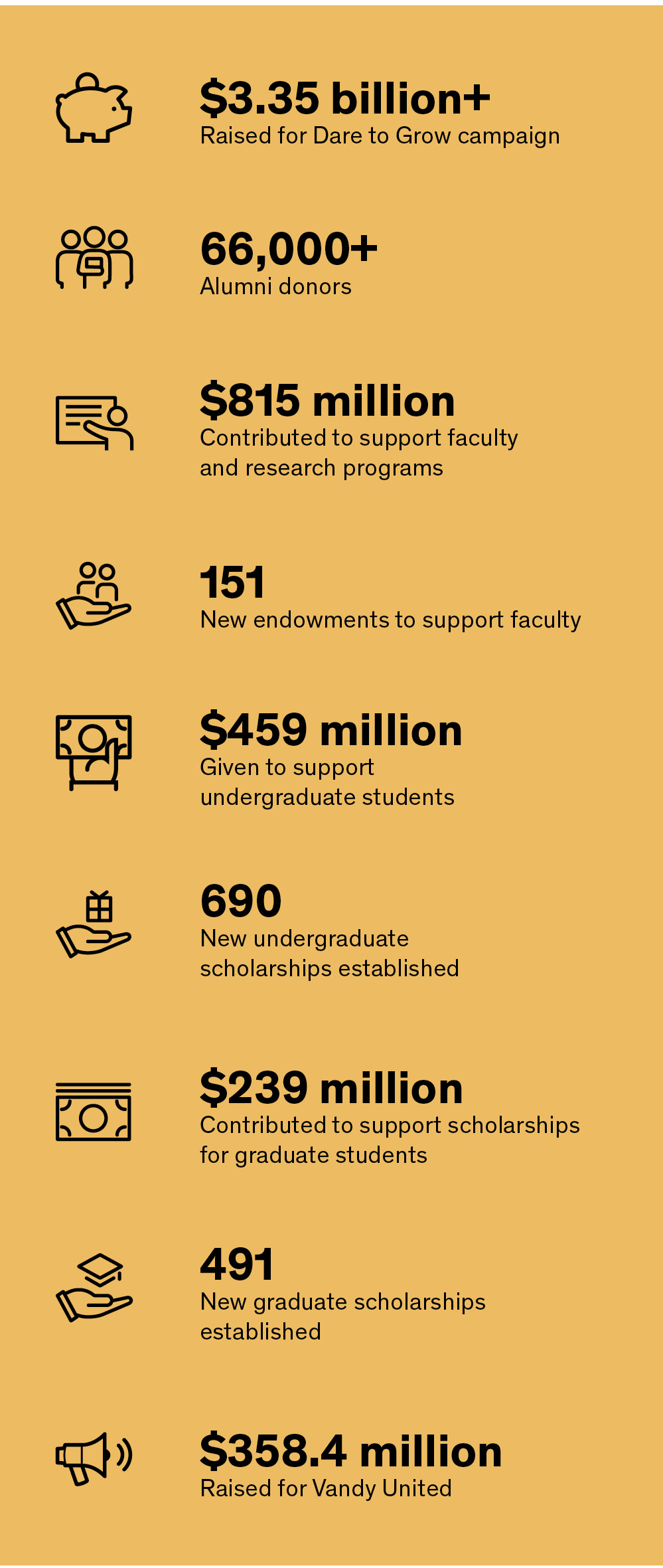 Gifts of any size—and to any area of Vanderbilt—make a difference. Join us in reaching new levels of impact by giving today to the historic Dare to Grow fundraising campaign.
